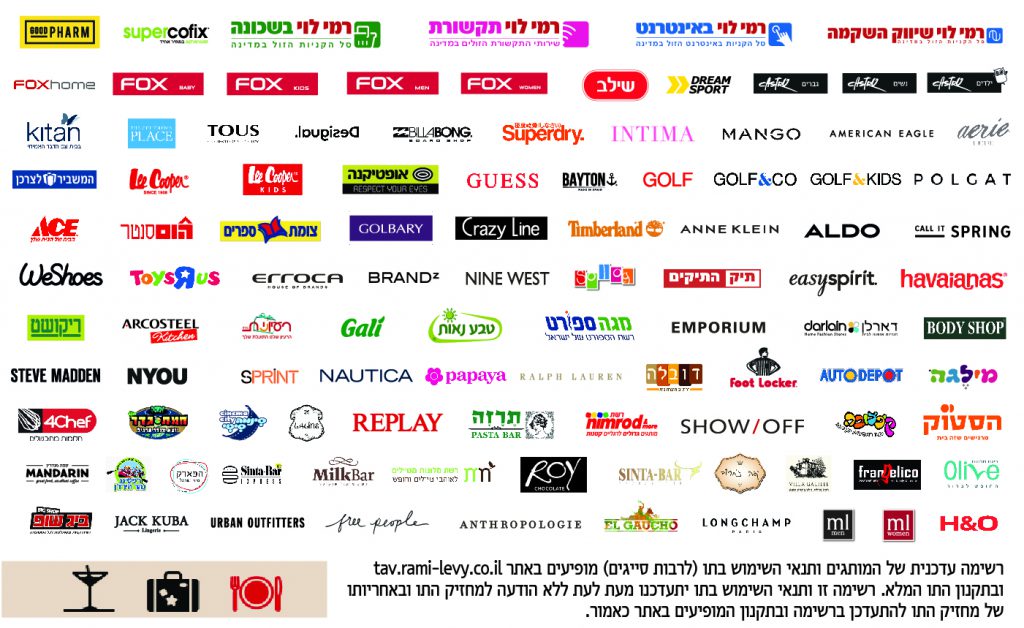 רשימת הרשתות המכבדות עשויה להתעדכן מעת לעת. לרשימה המעודכנת יש להיכנס לאתר: tav.rami-levy.co.il