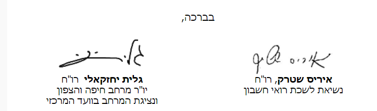 תודה לצוות המקצועי המסור בראשות רו"ח איריס אלדר על הסיוע הרב.