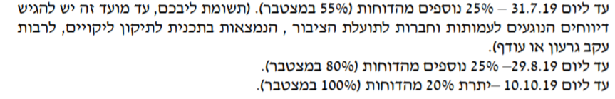 המועד החדש להגשת 30% מהדוחות הינו עד ליום שני (כולל), 8.7.19 במקום 30.6.19.
