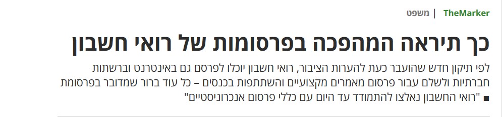 מדובר במהפכה של ממש באפשרויות הפרסום עבור ציבור רואי החשבון, שעד היום נאלצו להתמודד עם כללי פרסום מיושנים ולא רלוונטים.
